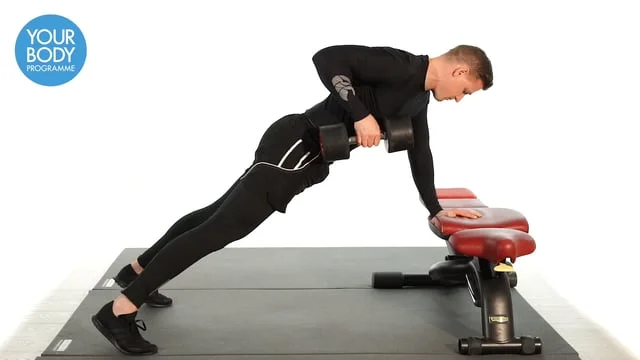 Support yourself by bending over and placing your left hand close to the upper edge of the bench. Choose from cardio strength mindfulness and more. Keeping the body in a straight line and with the glutes squeezed drive the elbows into the ground to pull your body up.